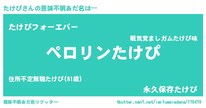 | ヒーロー風カッコイイあだ名 | 『スーパータケピ』『ウルトラたけぴマン』 |