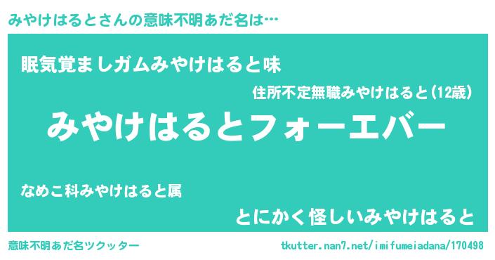 | ファンタジー風あだ名 | 『エターナルミヤケハルトー』 |