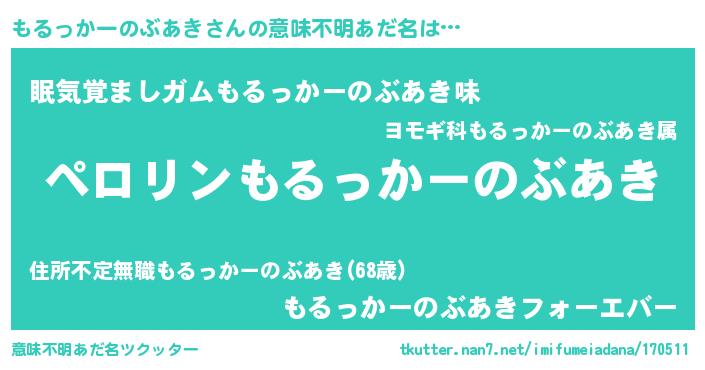 | 男性向けラノベタイトル風あだ名 | 『もるっかーのぶあきの憂鬱』 |