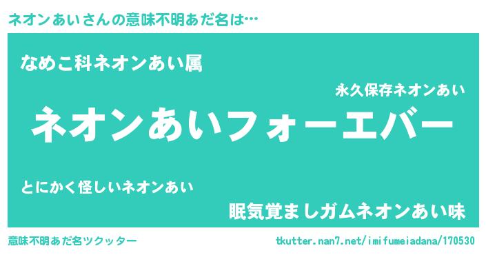 | 男性向けラノベタイトル風あだ名 | 『やはりネオンあいの青春ラブコメはまちがっている 』 |