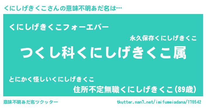 | 欧米人風あだ名 | 『トリンドルくにしげきくこ』 |