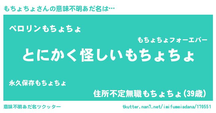 | ヘコむあだ名 | 『もちぷりん』『もちにゅー』 |