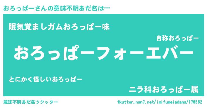 | ヒーロー風カッコイイあだ名 | 『ウルトラおろっぱーマン』 |