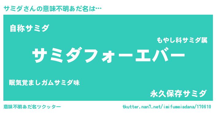 | 女子向けラノベタイトル風あだ名 | 『サミダの雑貨屋さん』『闇のサミダ』 |