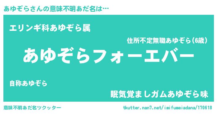 | ヒーロー風カッコイイあだ名 | 『ウルトラあゆぞらマン』『仮面アユダー』 |