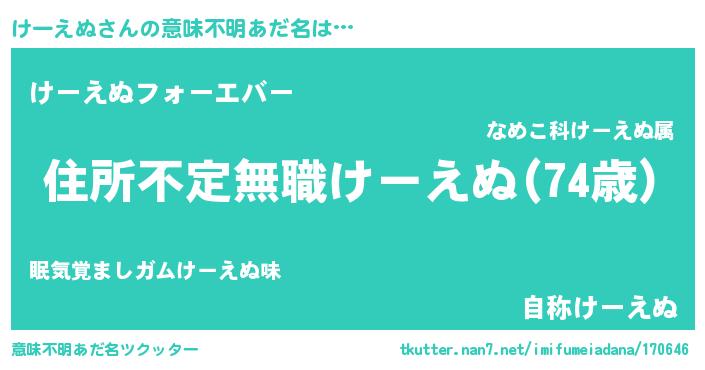 | ヒーロー風カッコイイあだ名 | 『仮面ケーダー』『ウルトラけーえぬマン』 |