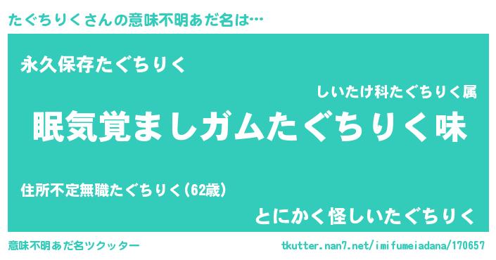 | ヘコむあだ名 | 『たぐちりく(笑)』『たぐを』 |