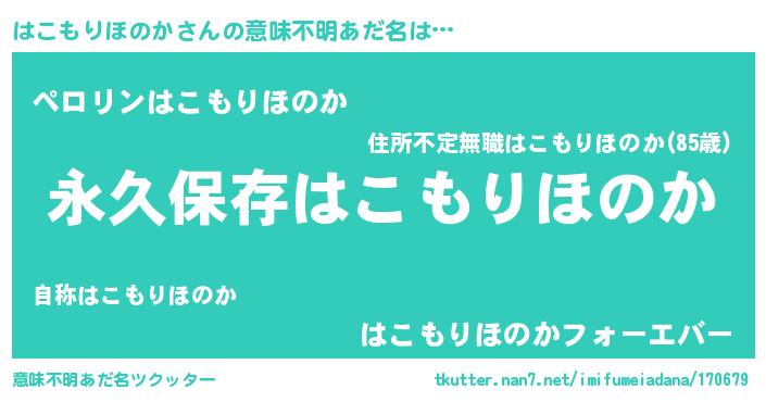 ヘコむあだ名 | 『はこもりほのか(笑)』『はこにー』 |