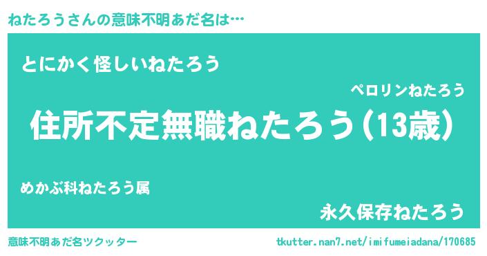 | ヘコむあだ名 | 『ねた太郎』『ねたろう(遠い目)』 |