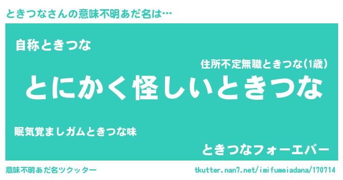 | 女子向けラノベタイトル風あだ名 | 『ときつな様がみてる』 |