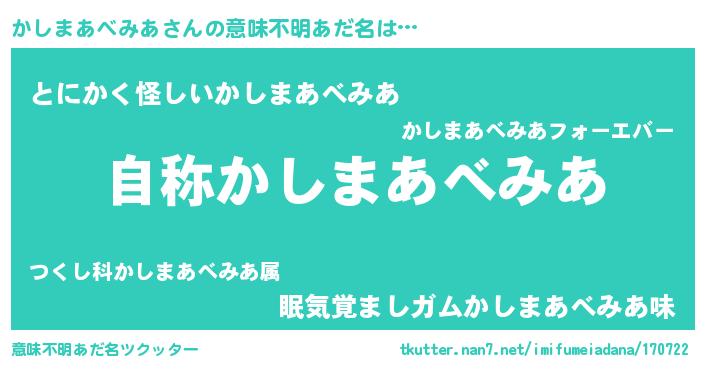 | 肩書あだ名 | 『かしまあべみあ閣下』 |