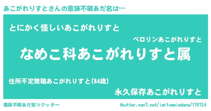 | ヘコむあだ名 | 『あこ太郎』『あこがれりすと(小並感)』 |