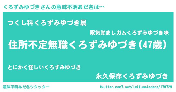 | 料理風あだ名 | 『くろずみゆづきのカルパッチョ風』 |
