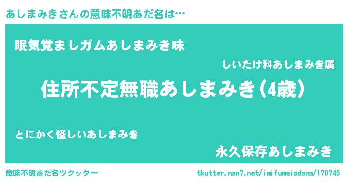 | 欧米人風あだ名 | 『あしまみき・ステッグマイヤー』 |