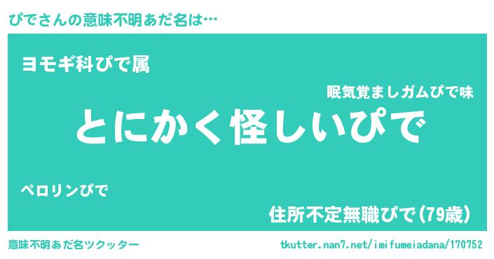 | 女子向けラノベタイトル風あだ名 | 『ぴでの卵を拾いまして』 |