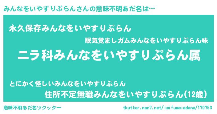 | ヘコむあだ名 | 『みんなをいやすりぷらん(遠い目)』 |