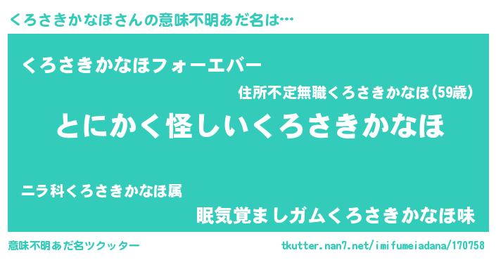 | ポケモン風あだ名 | 『ヒクロサキカナホ』『クロサダネ』 |