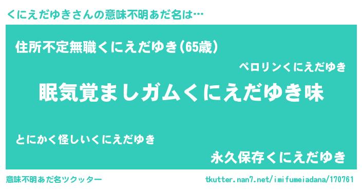 | ヘコむあだ名 | 『くにえだゆき(苦笑)』『くにもー』 |