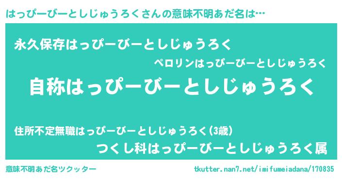 | ヘコむあだ名 | 『はっぴーびーとしじゅうろく(震え声)』 |