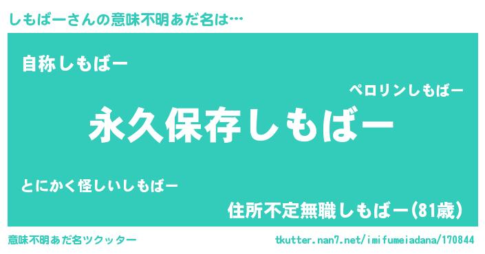 | 伝説のあだ名 | 『古より伝わる暗殺者しもばー』 |