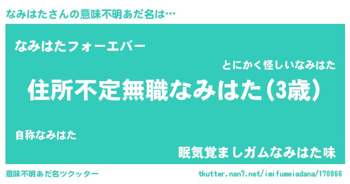 | ヒーロー風カッコイイあだ名 | 『仮面ナミダー』『ウルトラなみはたマン』 |