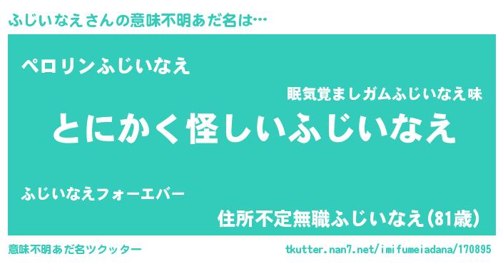 | 胡散臭い通販商品みたいなあだ名 | 『信頼と実績のサプリメント…その名も「ふじいなえ」』 |
