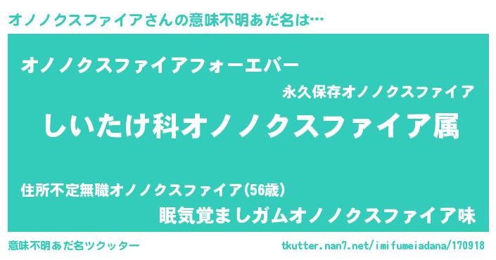 | 男性向けラノベタイトル風あだ名 | 『オノノクスファイアスレイヤー』 |
