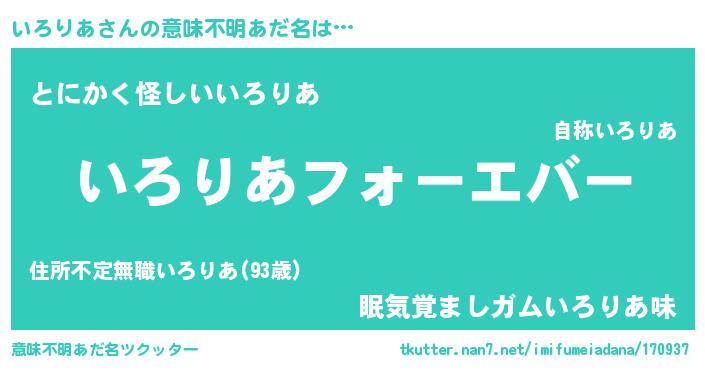 | 女子向けラノベタイトル風あだ名 | 『いろりあの雑貨屋さん』 |