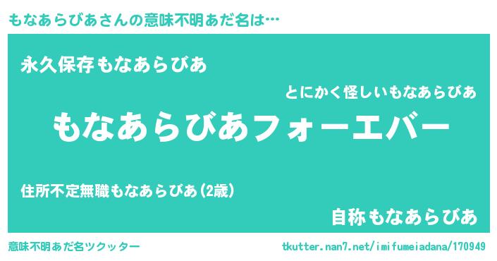 | 女子向けラノベタイトル風あだ名 | 『もなあらびあの雑貨屋さん』 |