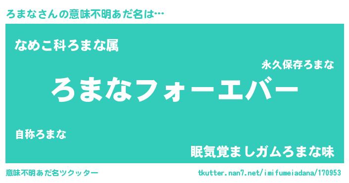 | 女子向けラノベタイトル風あだ名 | 『ろまな伯爵の花嫁』『死神ろまなの再婚』 |