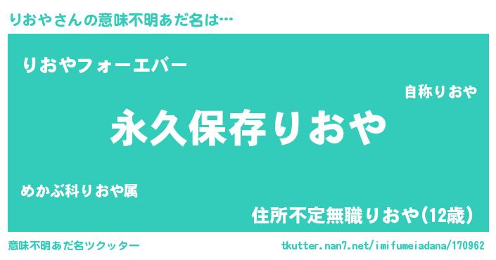 | 胡散臭い通販商品みたいなあだ名 | 『絶対に幸福をもたらす水素水…その名も「りおや」』 |