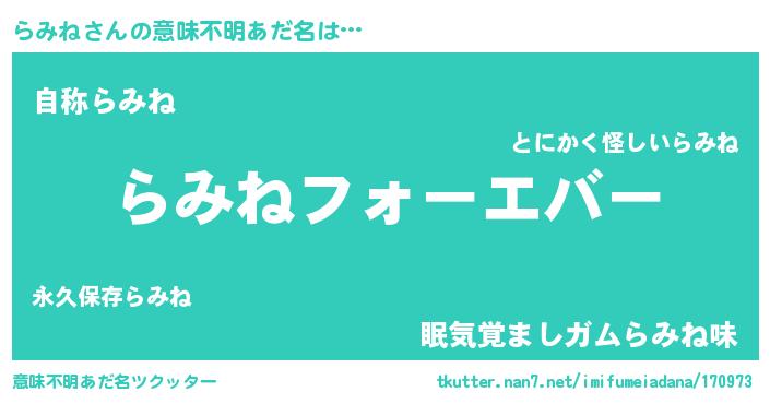 | 男性向けラノベタイトル風あだ名 | 『緋弾のラミネ』『魔法科高校のらみね』 |