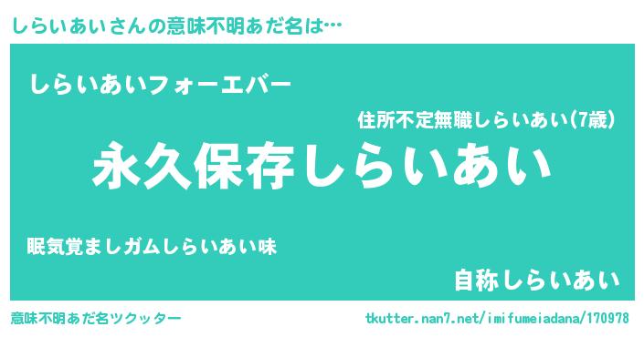 | 胡散臭い通販商品みたいなあだ名 | 『絶対に幸福をもたらす健康食品…その名も「しらいあい」』 |