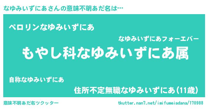 | 胡散臭い通販商品みたいなあだ名 | 『モテモテ間違いなし水晶球…その名も「なゆみいずにあ」』 |