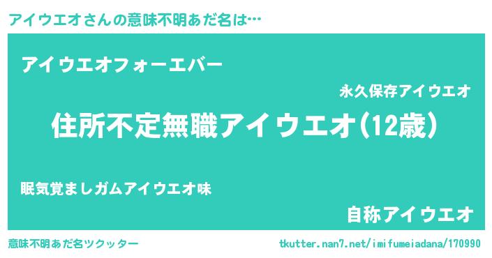 | 女子向けラノベタイトル風あだ名 | 『アイウエオが死なない童話 林檎のアイウエオの診療簿』 |