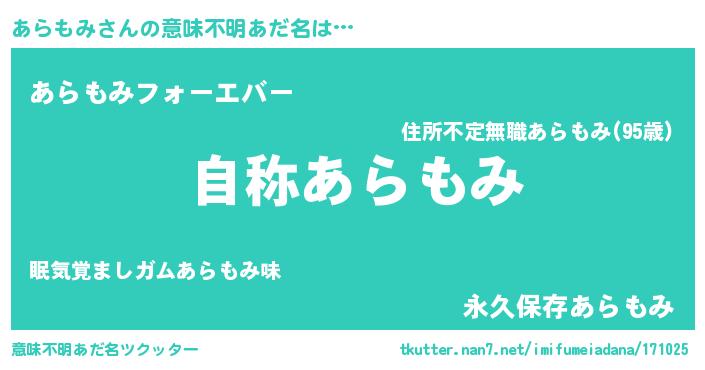 | ファンタジー風あだ名 | 『ゼアラトゥ』『エターナルアラモミー』 |