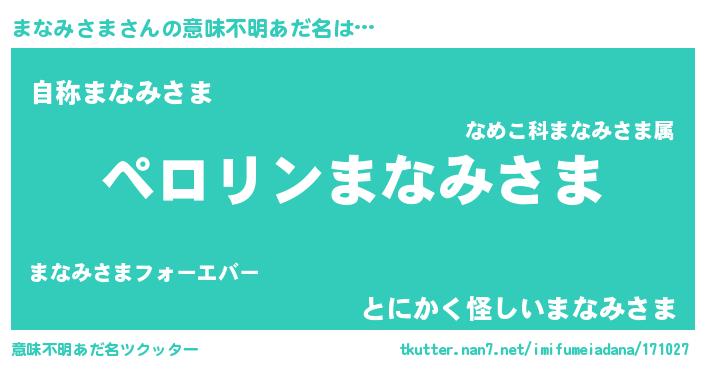 欧米人風あだ名 | 『まなみさま・ステッグマイヤー』 |