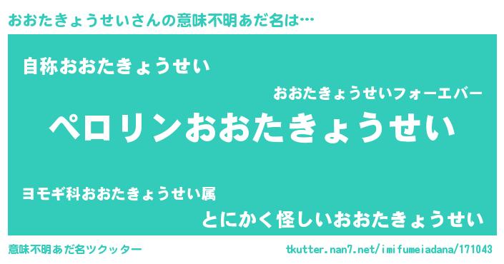 | 欧米人風あだ名 | 『アンジェラ・おおたきょうせい』 |