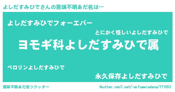 | 男性向けラノベタイトル風あだ名 | 『よしだすみひで~年齢イコール彼女いない歴の魔法使い~』 |