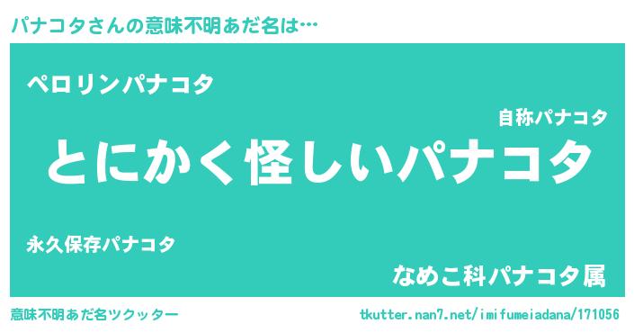 | 男性向けラノベタイトル風あだ名 | 『ダンジョンにパナコタを求めるのは間違っているだろうか』 |