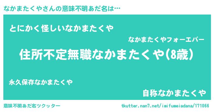 | 伝説のあだ名 | 『解き放たれた魔法使いなかまたくや』 |
