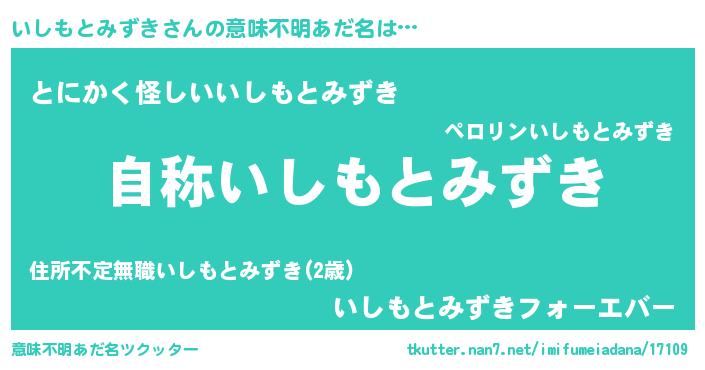 | 肩書あだ名 | 『いしもとみずき総統』 |