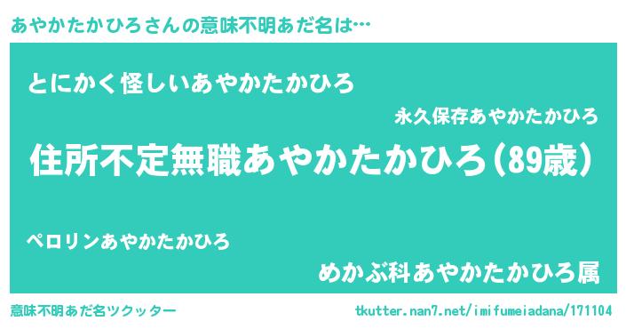 | 欧米人風あだ名 | 『ダレノガレあやかたかひろ』 |