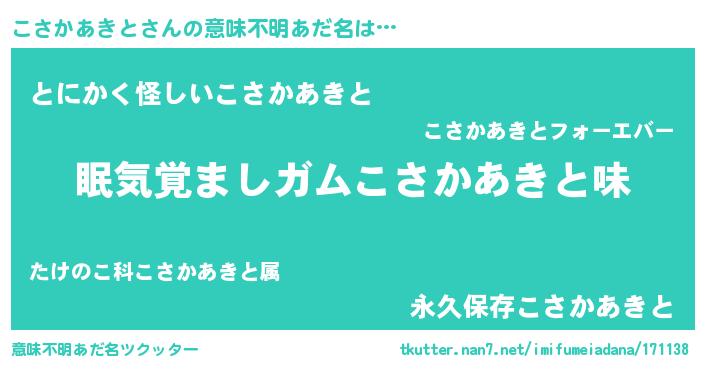 | 男性向けラノベタイトル風あだ名 | 『ノーゲーム・ノーコサカアキト』 |