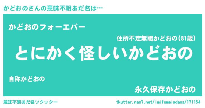 | 胡散臭い通販商品みたいなあだ名 | 『信頼と実績のサプリメント…その名も「かどおの」』 |