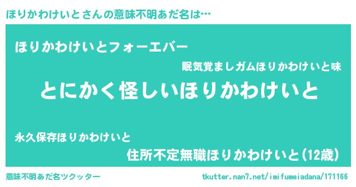 | 胡散臭い通販商品みたいなあだ名 | 『伝統あるネックレス…その名も「ほりかわけいと」』 |