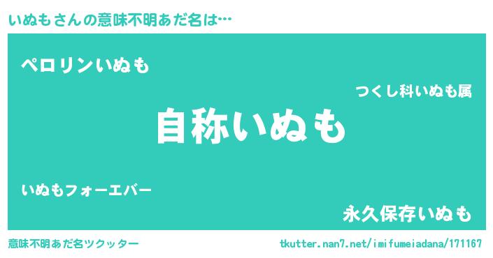 | 男性向けラノベタイトル風あだ名 | 『うちのいぬもが世界を掌握している!』 |