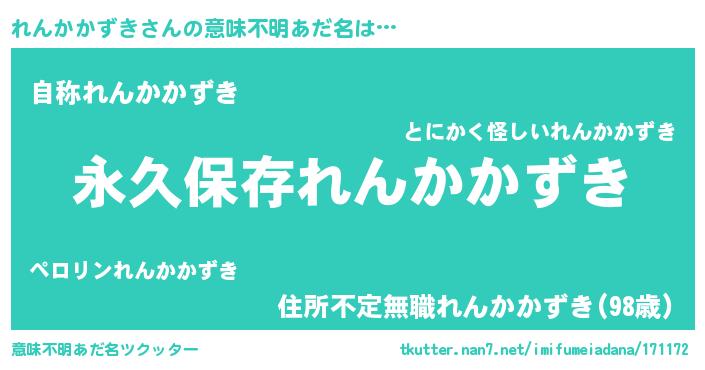 | 胡散臭い通販商品みたいなあだ名 | 『絶対に幸福をもたらす水素水…その名も「れんかかずき」』 |