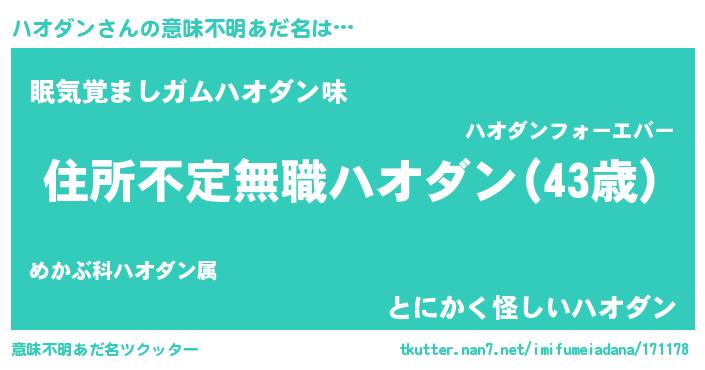 | ポケモン風あだ名 | 『ハーオイ』『ハックウザ』 |