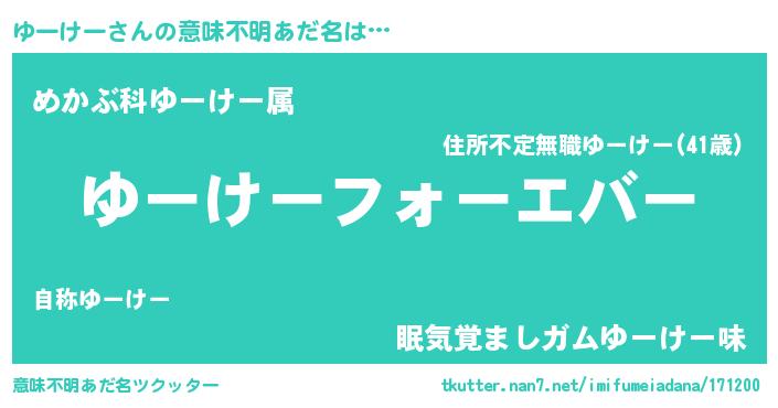 | 欧米人風あだ名 | 『ゆーけークリステル』 |